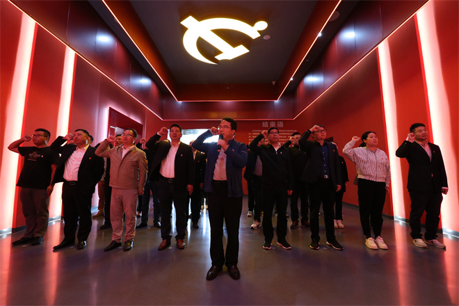 最后,全體黨員面對黨旗,在公司黨委副書記、紀委書記祁傳楊的帶領下,重溫入黨誓詞,在鏗鏘誓言中堅定理想信念,牢記初心使命。