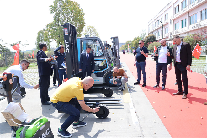 江淮重工廠區內,多款拳頭產品整裝列隊等待著俄羅斯經銷商的來訪:新能源高壓鋰電產品、專用鋰電車系列產品、大噸位系列產品、倉儲車系列產品……全面展示了江淮重工的最新研發成果。俄羅斯經銷商對重點車型現場試乘試駕,在帶載、坡道啟停等試驗測試后,對于車輛綜合性能及人機工程性給予了高度評價,并達成批量意向訂單。